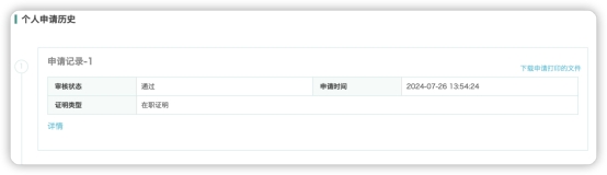 5、 点击需要打印的申请记录,下载加盖电子印章的PDF文件。