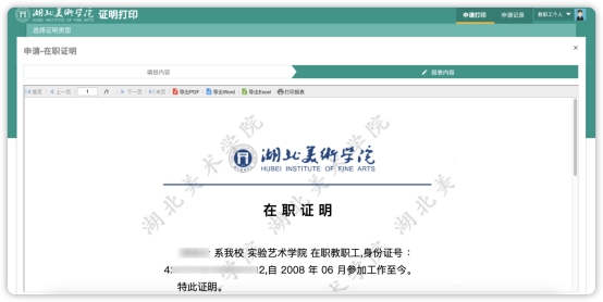 二、 教职工证明打印