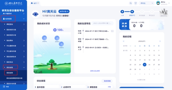 1. 点击“培养管理”-“我的成绩”-“我的成绩”。